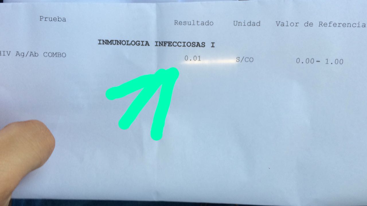 Su valiosa ayuda determinando si estoy o no contagiado ya pasaron 3 meses desde la ultima vez que tuve relaciones sexuales y me hice la prueba donde salieron los siguientes resultados IHV AG/AB COMBO RESULTADO:0.01 unidad:S/CO referencia:0.00-1.0